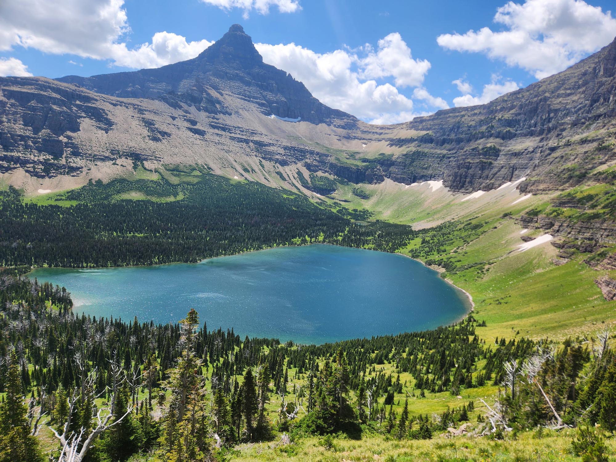 The next morning, I was nine miles from Glen Pass, and it took almost five hours to reach the top. Once again, the snow on the approach was spotty, but the descent was entirely covered. It was a bit sketchy—there was a thousand-foot runout to the left, so I took it slow to get down. After four more miles of postholing and route finding, I finally made it to open trail. Exhausting work.
